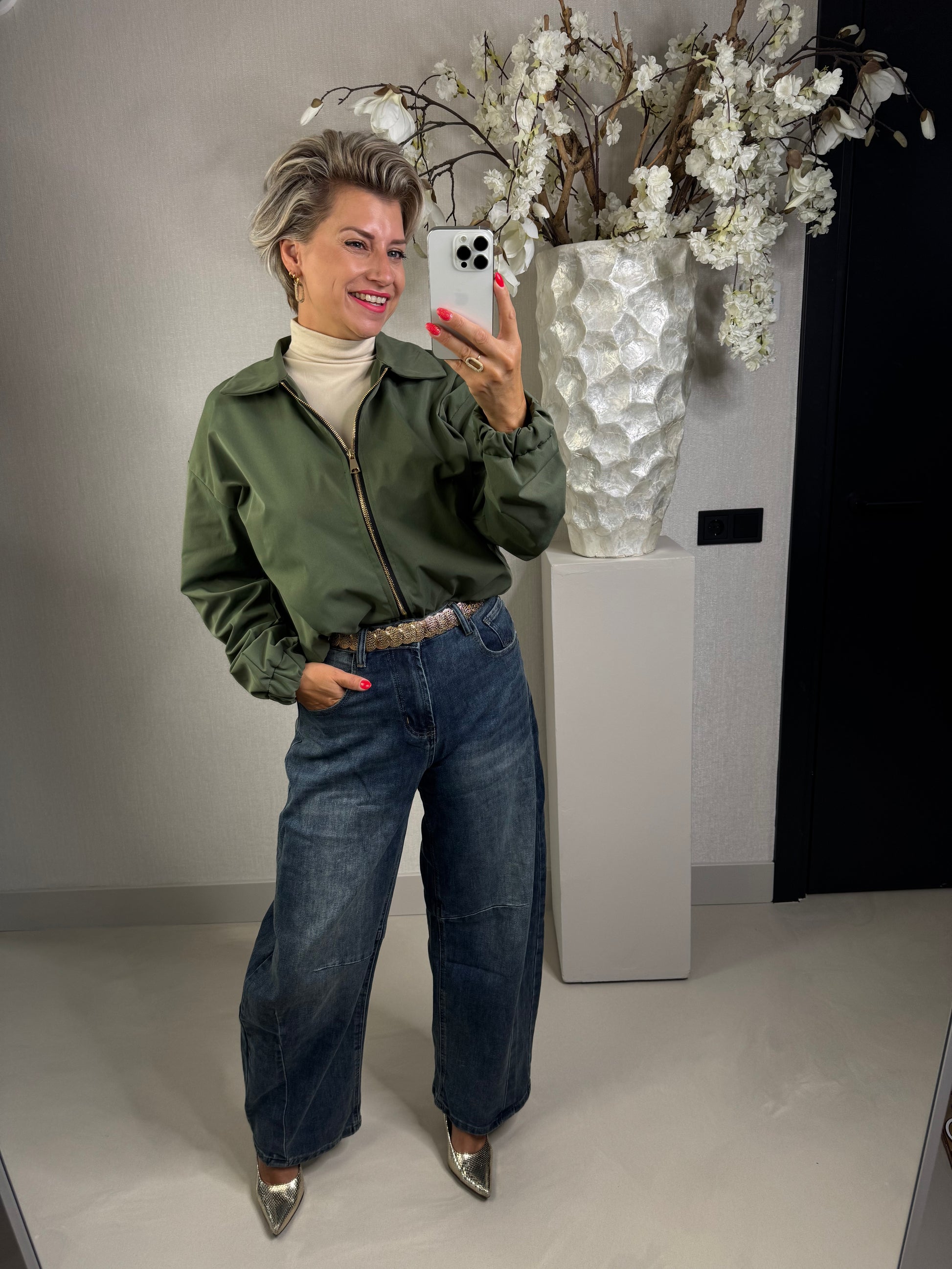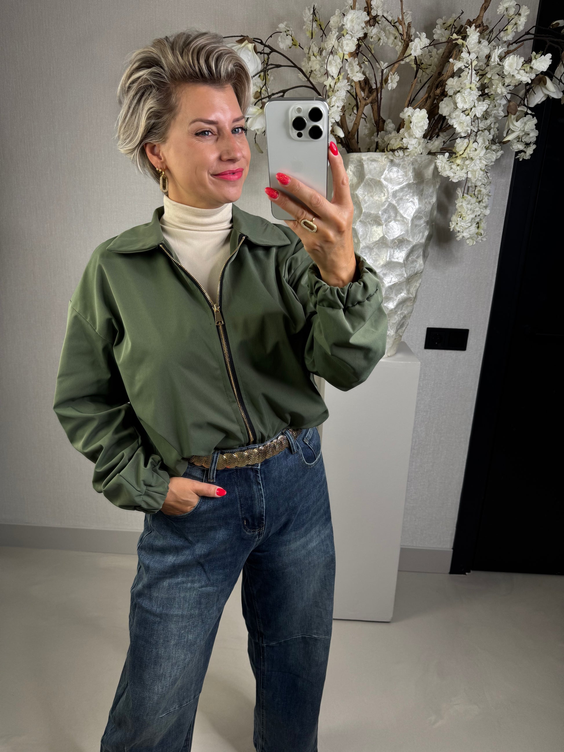 Super leuk jasje met iets een ballon effect, de achterkant van dit jasje heeft ook een leuk detail waardoor deze een speels lookje creèrt, het jasje is één maat en past tot een maat 42