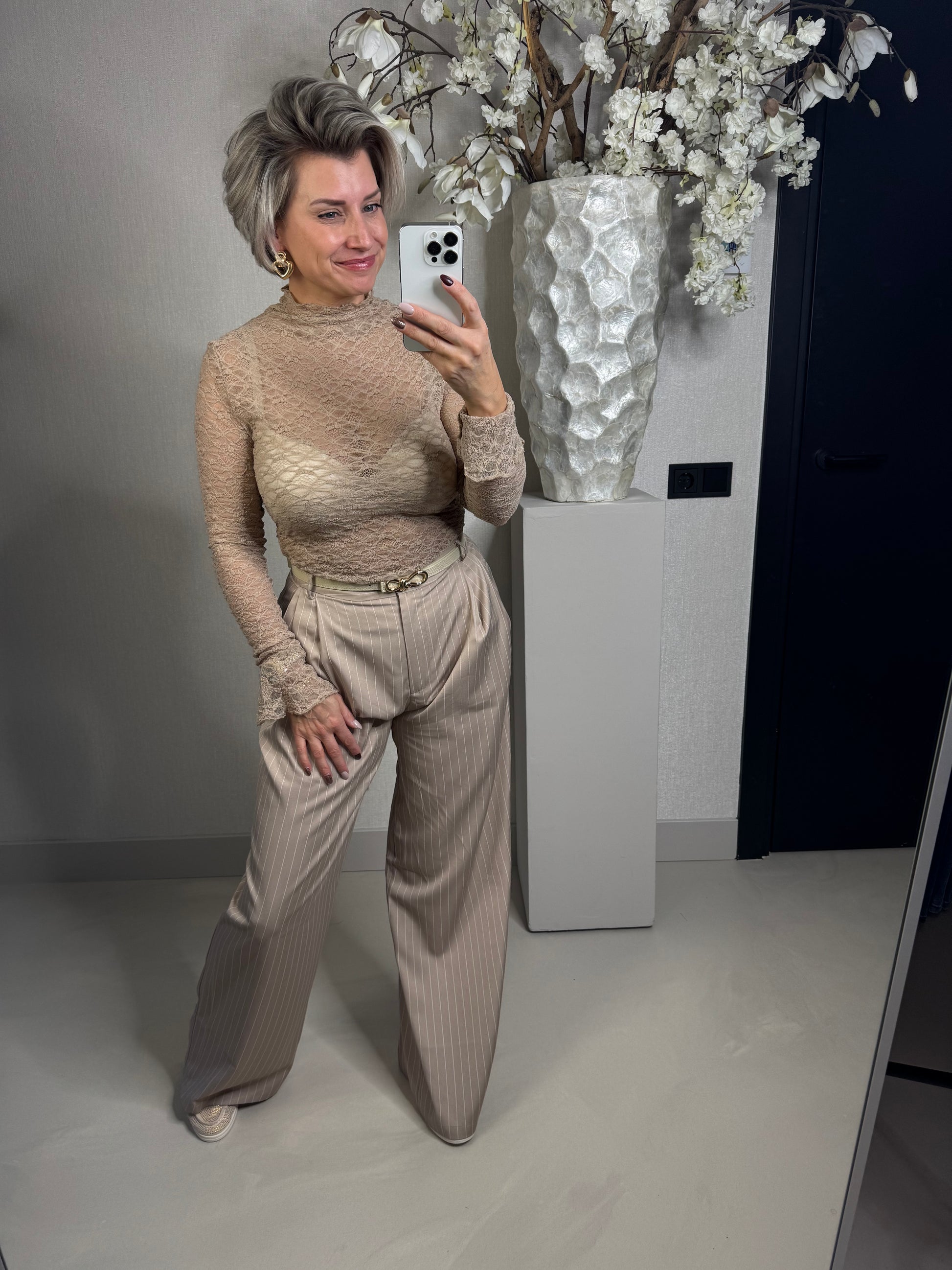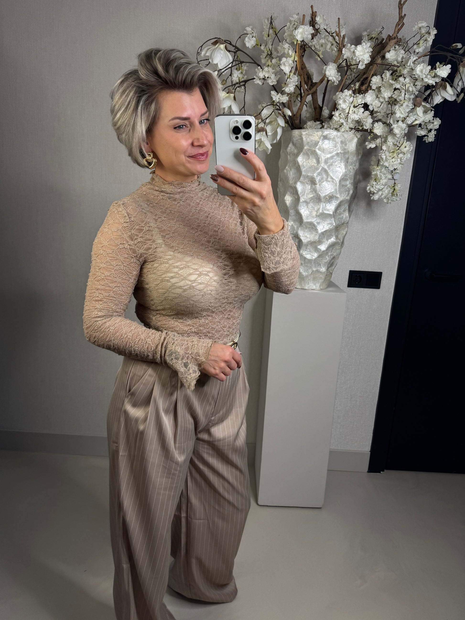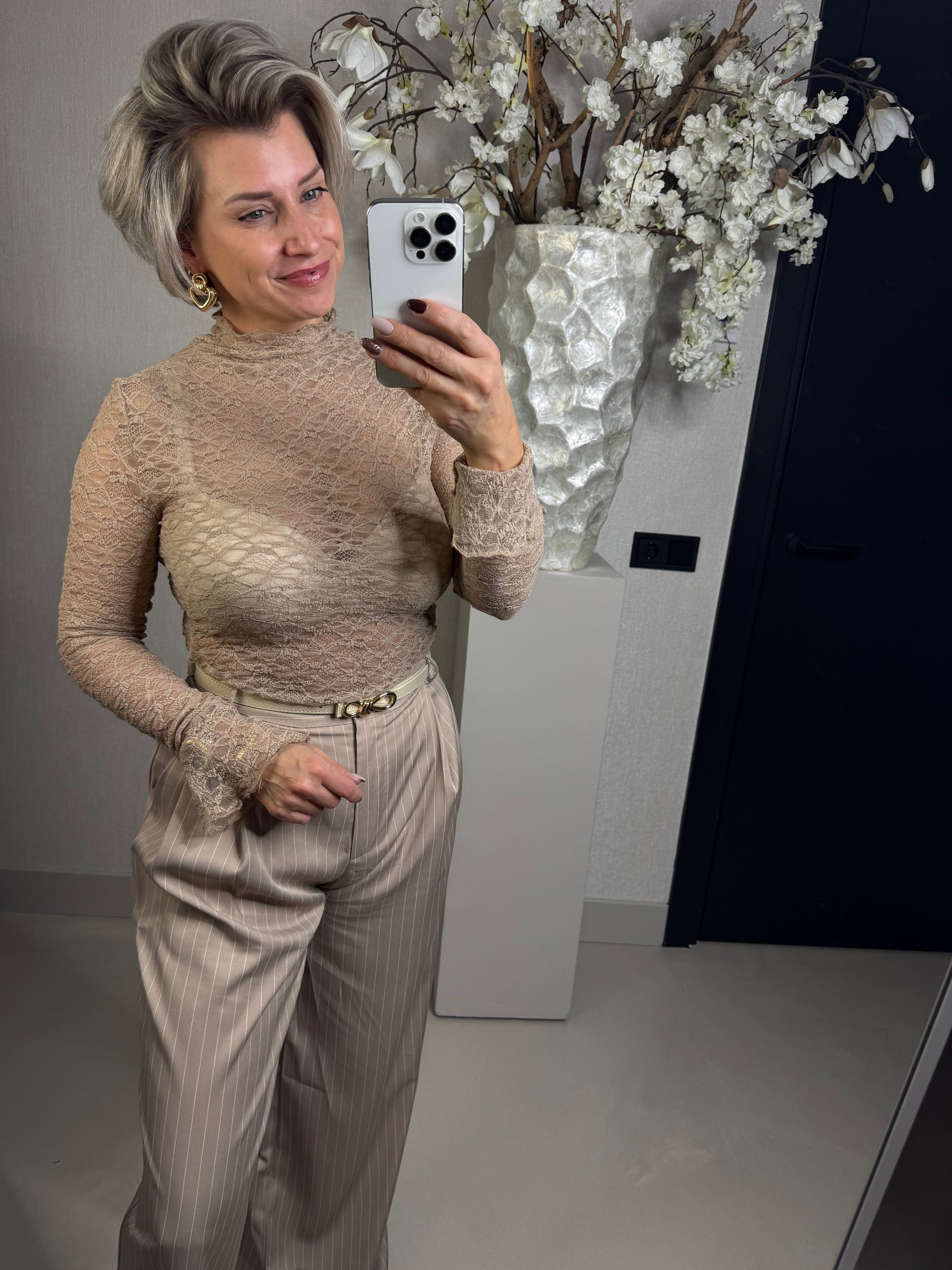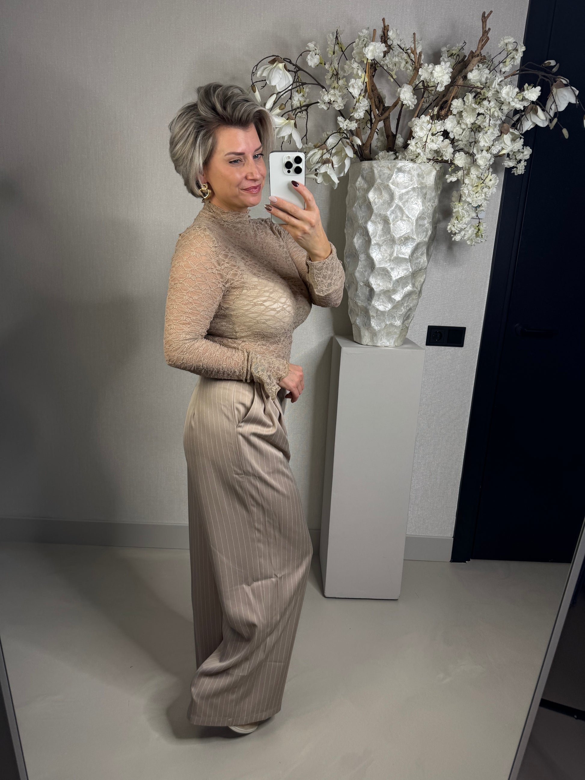 Musthave! de kanten tops die onmisbaar zijn..ideaal onder truien, blazers en vestjes! de top bevat stretch en heeft een klein trompet mouwtje