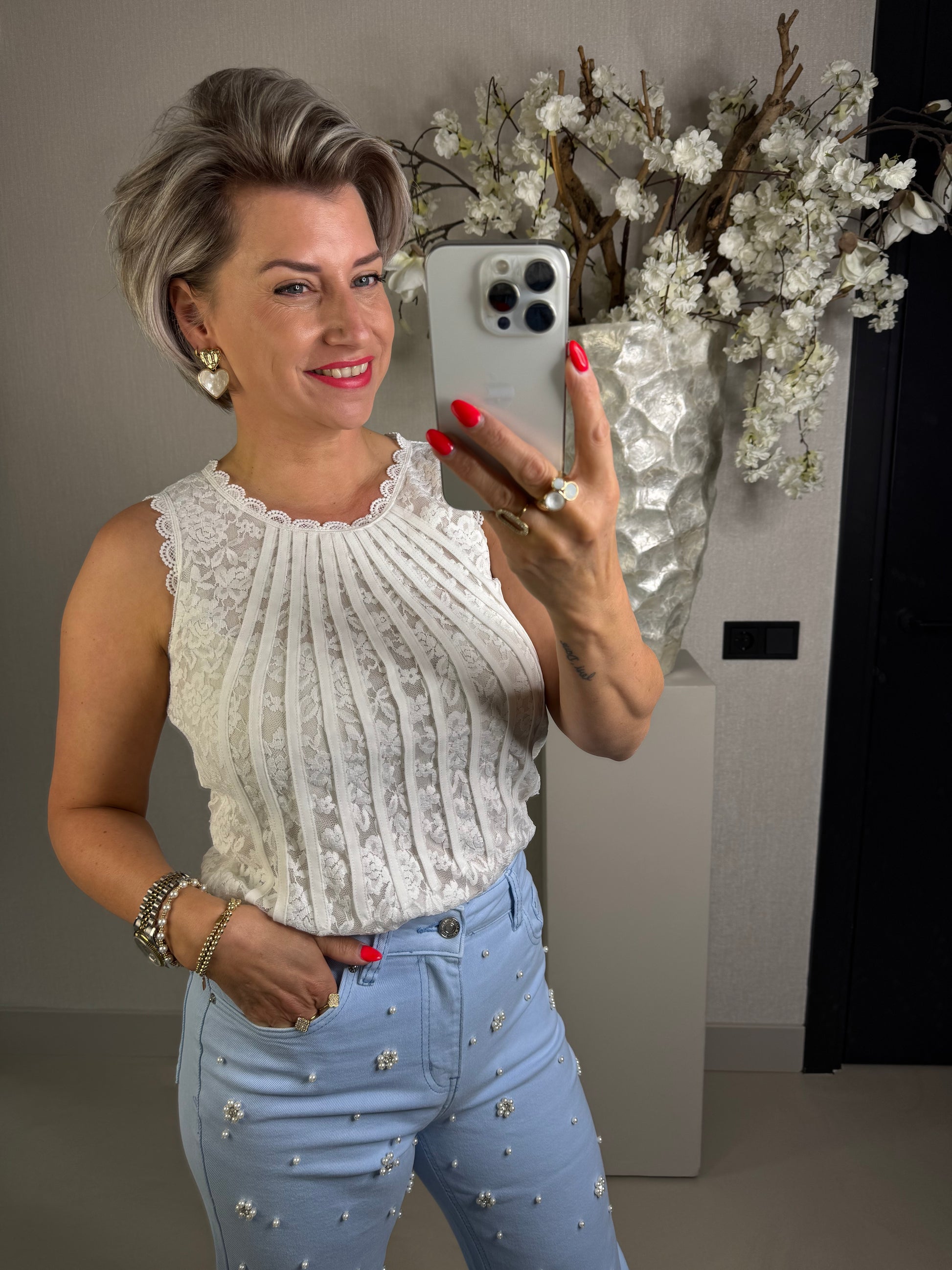 Top mouwloos kant