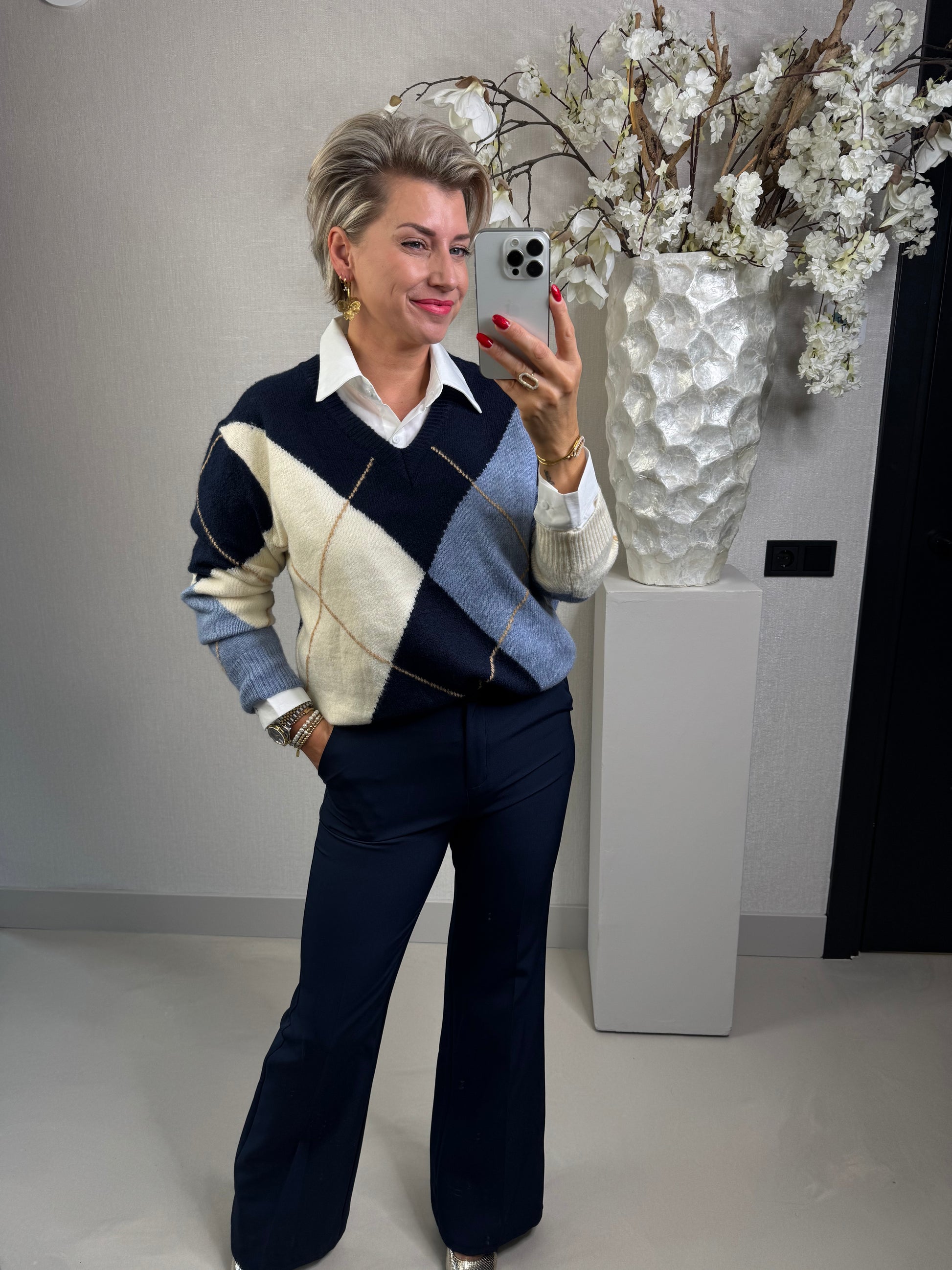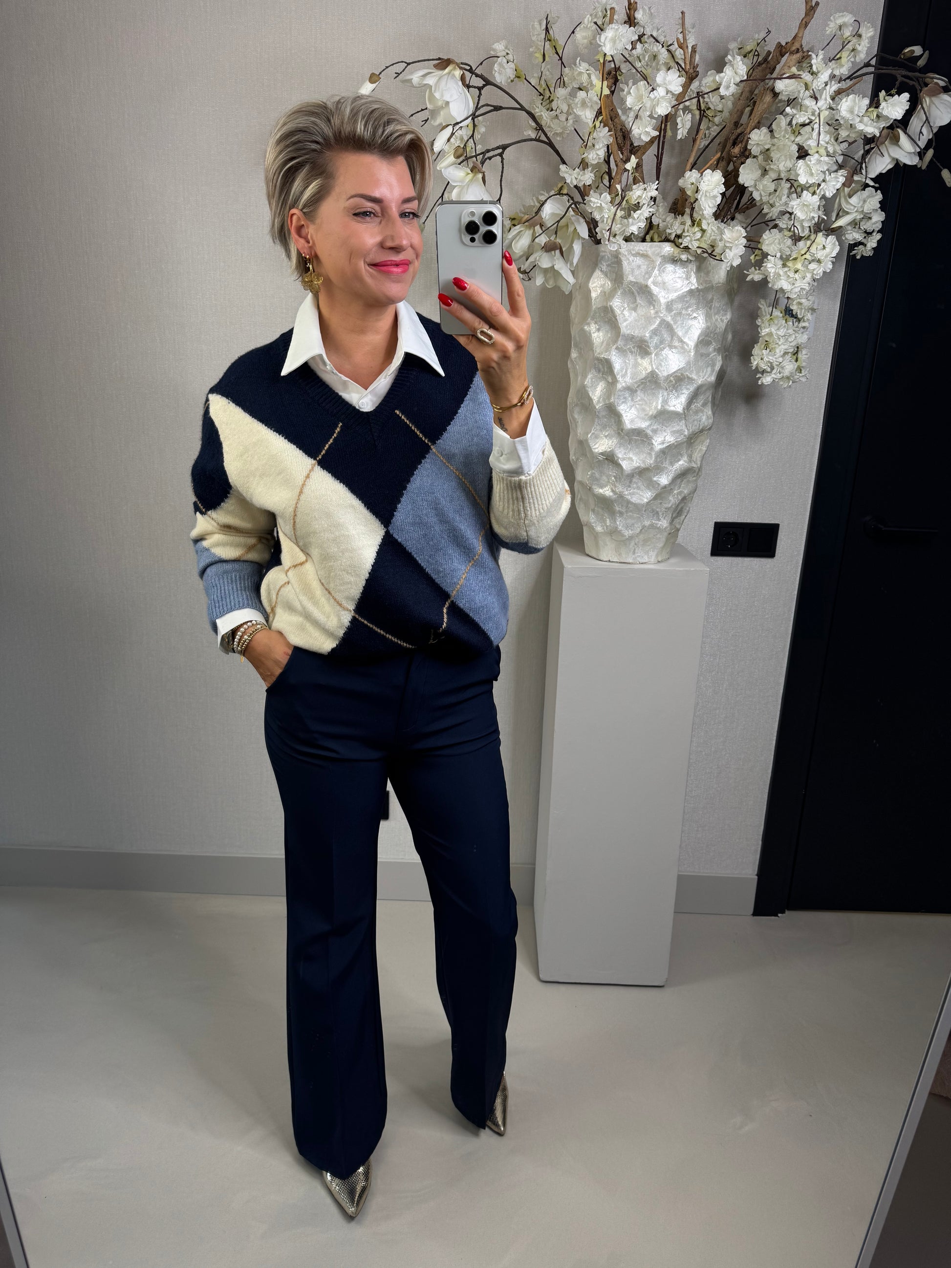 Comfy trui met wiebertjes patroon, ook is deze trui heel leuk te combineren met bijv. een witte blouse eronder, de trui is één maat en past tot een maat 42