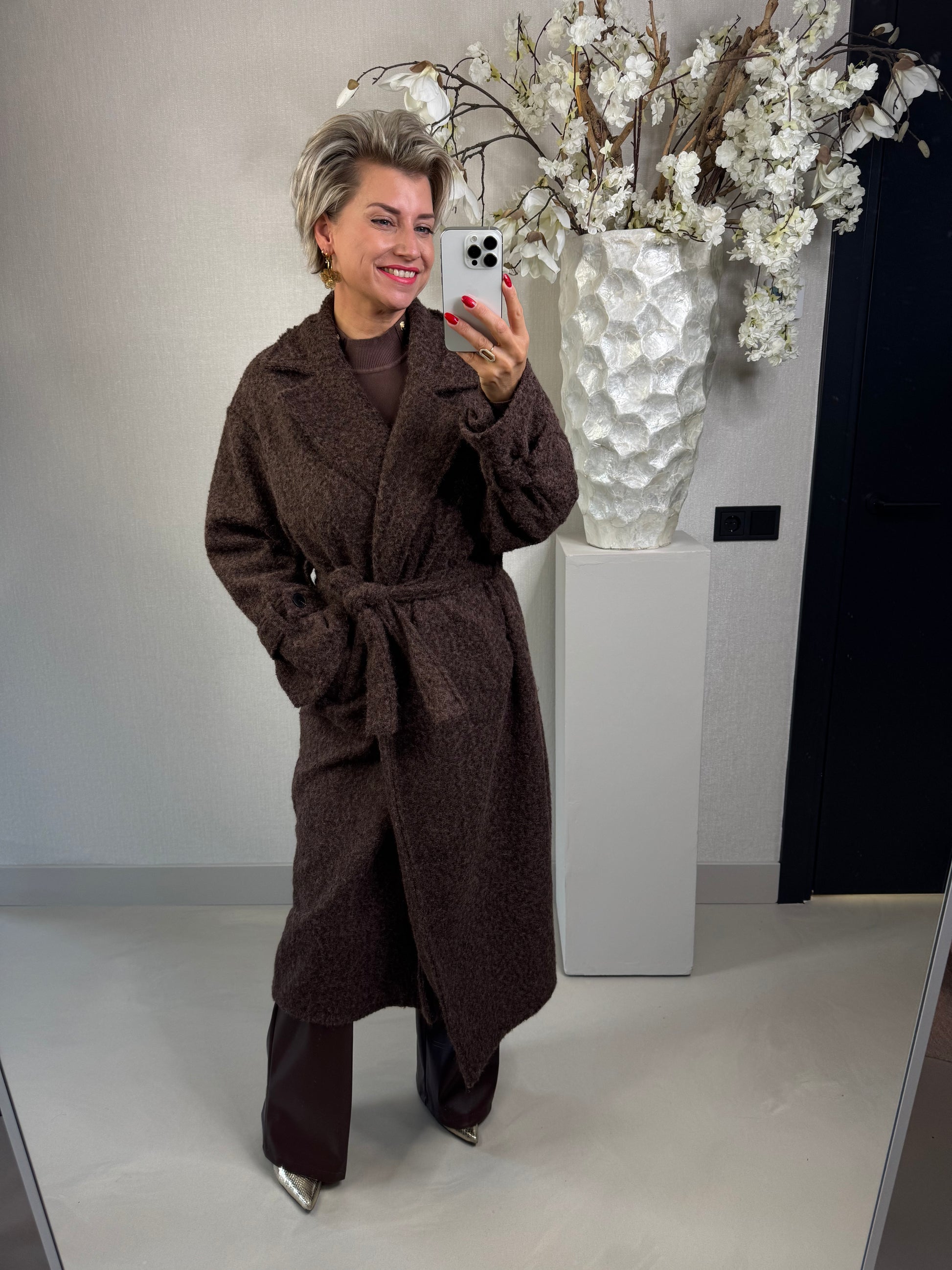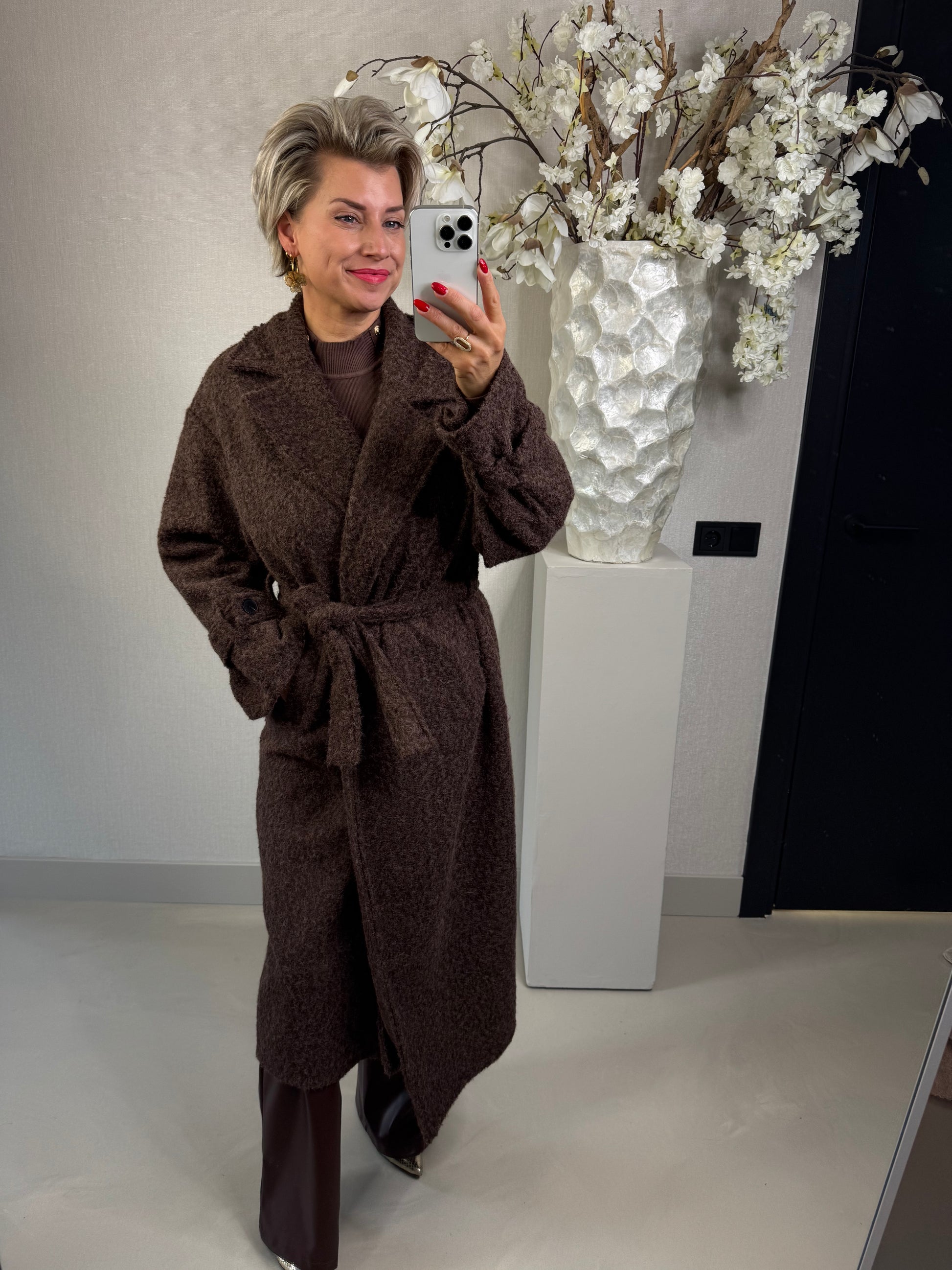 Wollen mantel met ceintuur, de mantel is één maat en past tot een maat 40/42